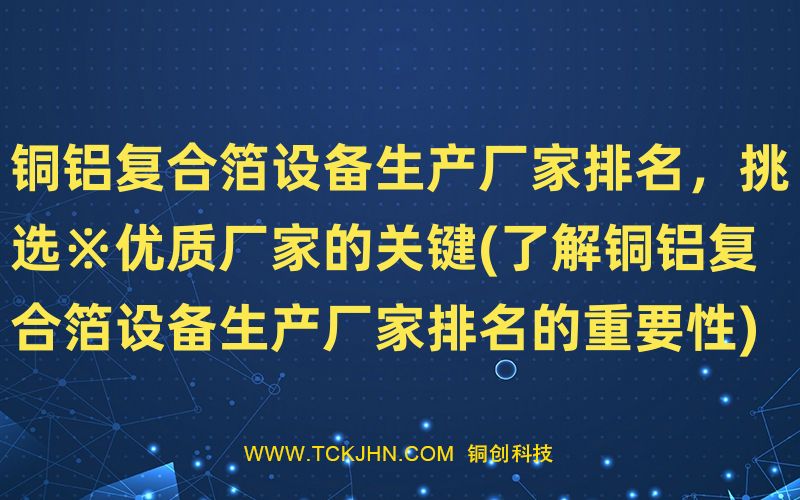 2. 為什么了解銅鋁復(fù)合箔設(shè)備生產(chǎn)廠家排名很重要