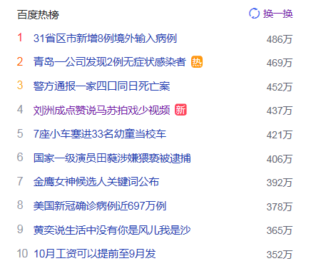 2.青島一公司發(fā)現(xiàn)2例無癥狀感染者 獵頭熱點熱度469萬