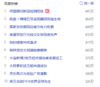 1. 拜登顧問新冠檢測陽性 獵頭熱度熱點481萬