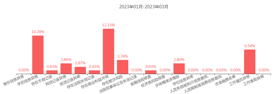 存在法院失信記錄占比0.93%,背調異常項目的NO.7,存在金融違規行為通常是因為候選人未經有關金融監管機構批準,擅自從事金融活動,包括非法從事銀行類業務、非法從事證券類業務和非法從事保險類業務活動等。